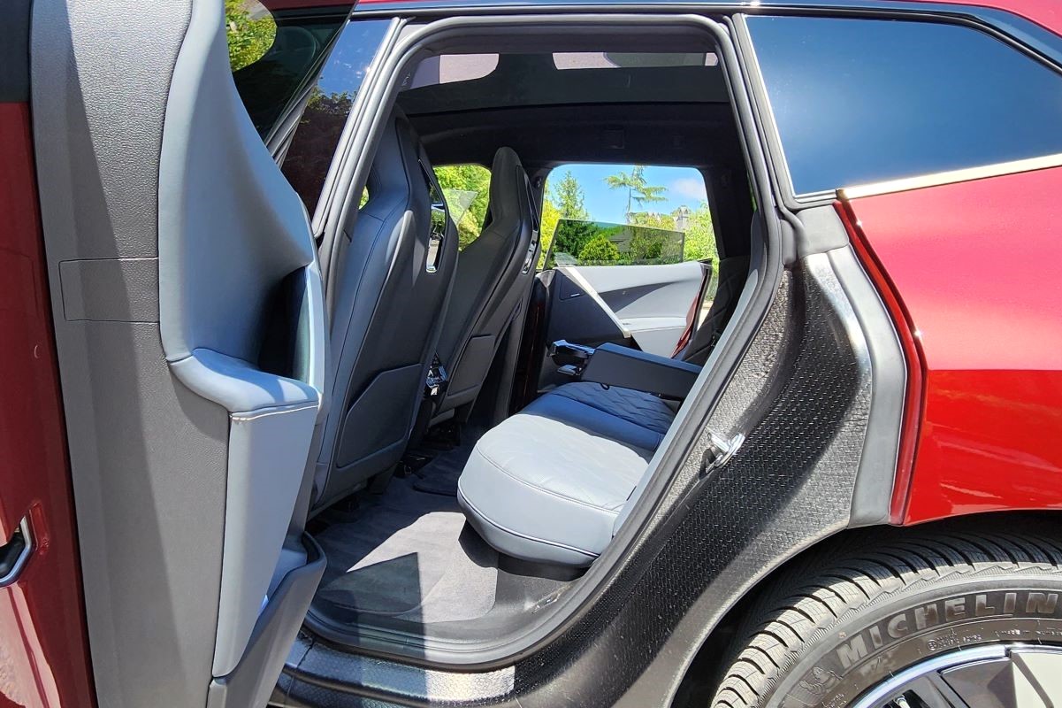 Ayrıntıya gösterilen özen her yerde kendini hissettiriyor. Arka koltuk yolcularına vaat edilen sunum dahil. Aks mesafesinin müjdelediği haliyle arka koltuklar inanılmaz ferah. Diz mesafesi endişesine gerek yok. Baş mesafesi sıkıntısı yok. Enden de geniş olunca arka koltuk üç kişiyi ağırlayacak genişliği sağlıyor. Elbette elektrikli mimari de önde olduğu gibi önemli kazanımlar sağlıyor. Tamamen düz zemin sayesinde üç kişinin de ayakları için bolca alan var. Kimse diğerini rahatsız etmeden üç kişi oturabiliyor. Elbette orta minder ve sırtlık yandakiler kadar konforlu değil.