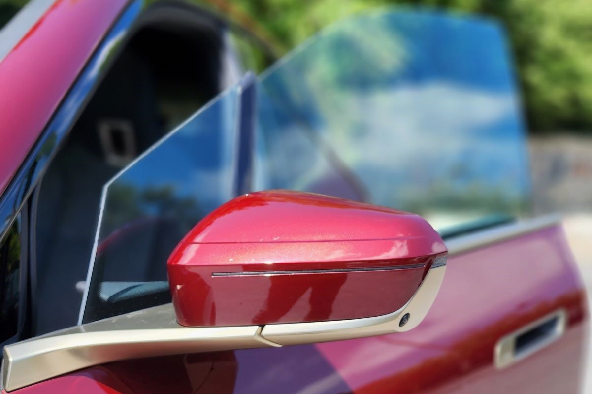 Sanırım ilk olarak 4 Serisi’nde marka bu tasarımı kullanmıştı. Forum ve gruplarda da çok eleştirilmişti. Birçok benzetme de yapıldı. Ayrıca yenilikçi düşünecek olursak bence gayet şık ve yakışıyor. Ancak gelenekçi düşünecek olursak evet, eski enine böbrek tasarımı çok güzeldi. Elbette elektrikli bir otomobil olması itibariyle böbrek kapalı. Böbreği süsleyen altın sarısı yüzey cam altı çıtası boyunca D sütununa kadar uzanıyor. Yan aynaların altı dahil. Ayrıca gömme kapı kolları da yine bu renkte. Bunun dışında koyu kırmızı gövde üzerinde bu detaylar güzel patlıyor. Elbette kişisel zevk devreye giriyor. Sanki saten veya karbon daha bir yakışırdı.