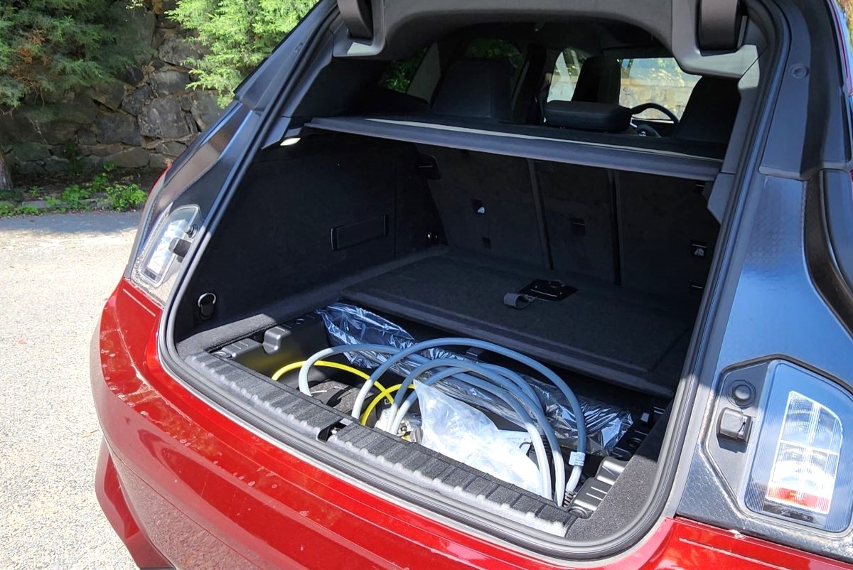 Aşağıda normalde telefon yuvası veya kablosuz şarj olurdu. İşte alan artık yok. Derin bir boşluk söz konusu. Ne egzoz ne şaft, önden arkaya doğru giden her hangi bir şey yok. Araç zemini sadece bataryaya ev sahipliği yapıyor. Bu da tamamen bir zemin anlamına geliyor. Bu boşluk o kadar büyük ki, sürücü buradan sağ koltuğa sorunsuz geçebiliyor. Hem de benim gibi 192 cm’lik bir sürücü bile.