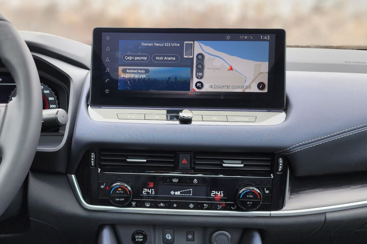 Güncel haliyle Nissan Qashqai modern dünyanın gereksinimlerini karşılıyor. Kokpit tasarımı yalın, ama bir o kadar da modern. Dijital ekran veya dokunmatik bilgi-eğlence ekranı gibi oyuncaklar gelişmiş bağlanabilirlik anlamına geliyor. Dijital ekrandaki bilgiler okunaklı. Orta konsoldaki merkezi bilgi ekranının yeri gayet güzel. Ayrıca ekran okunaklı ve görüntüler canlı ve parlak. Ekran, Apple Carplay ve AndroidAuto desteği sağlıyor. Hemen altında bağımsız bir iklimlendirme paneli yer alıyor. Daha aşağıda açık bir göz yer alıyor. Vites seçici kompakt tasarımıyla ferahlık algısını destekliyor. Hemen gerisinde bir sürüş modu seçici yer alıyor. Buradan kar, otoyol vs farklı sürüş profilleri seçilebiliyor.