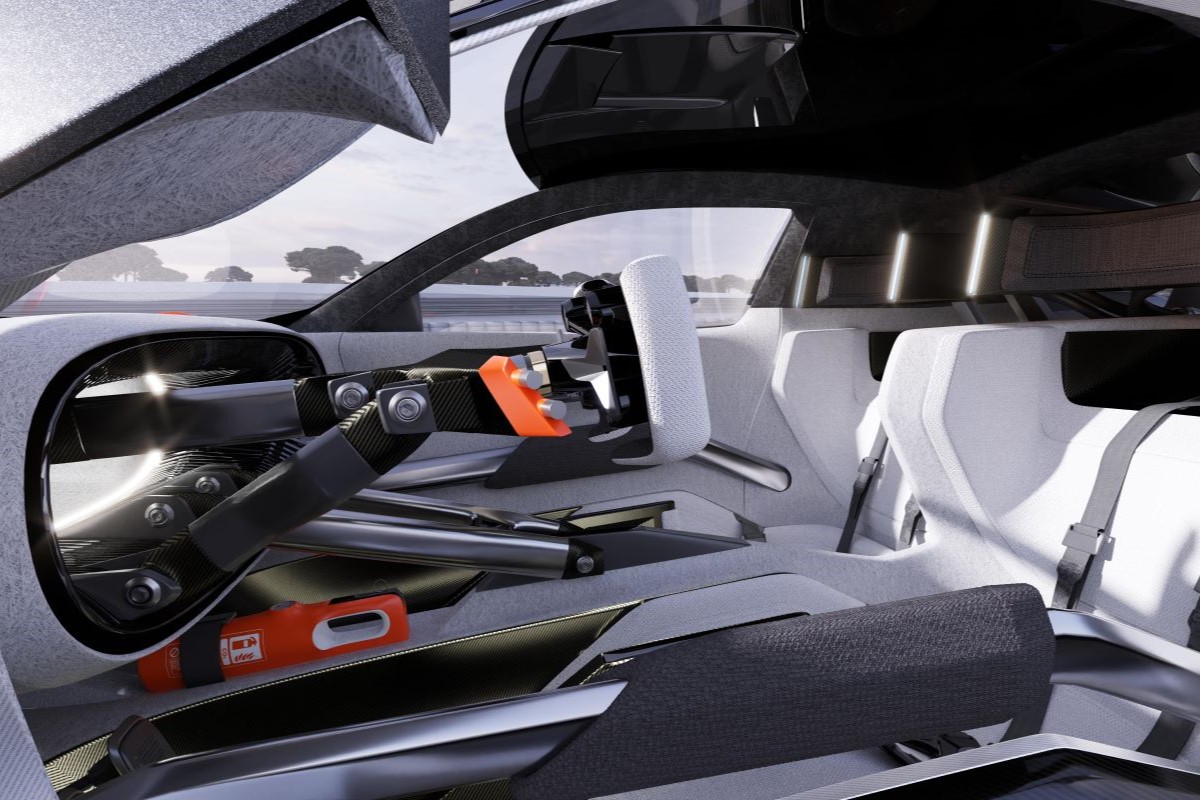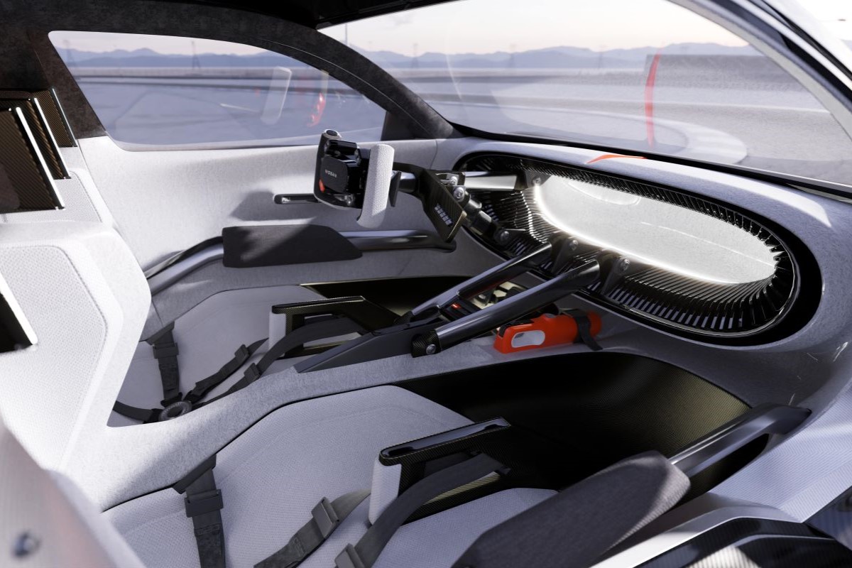 Dış tasarımdaki yenilikçi yaklaşım içeride de devam ediyor. Geleneksel direksiyon yerini dikdörtgen bir oluşuma bırakıyor. Alışılmış orta konsol tarih olmuş. Hatta genel olarak konsol kavramının yerinde yeller esiyor. Direksiyon üzerindekiler hariç fiziki düğme yok denilecek kadar az. Elbette tüm bunlar konsept araca özel unsurlar. Ancak illaki gelecekte bazı çözümleri gelecekte seri araçlarda görebiliriz.