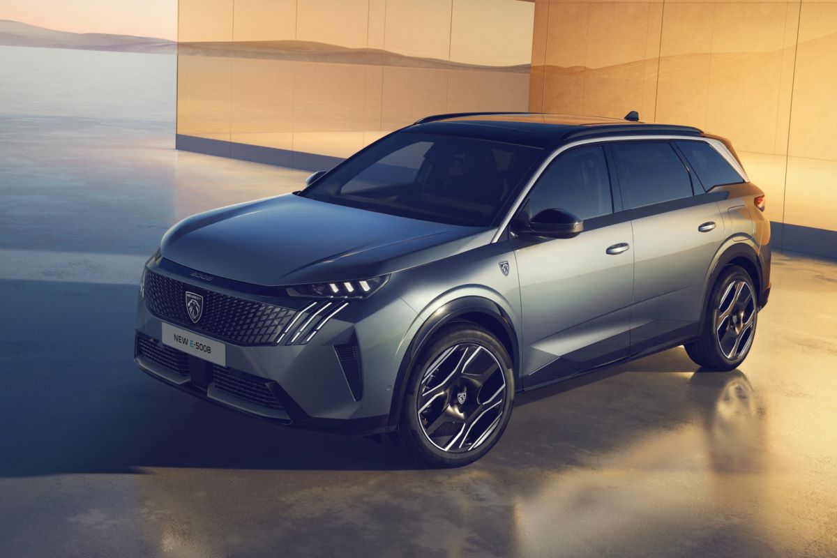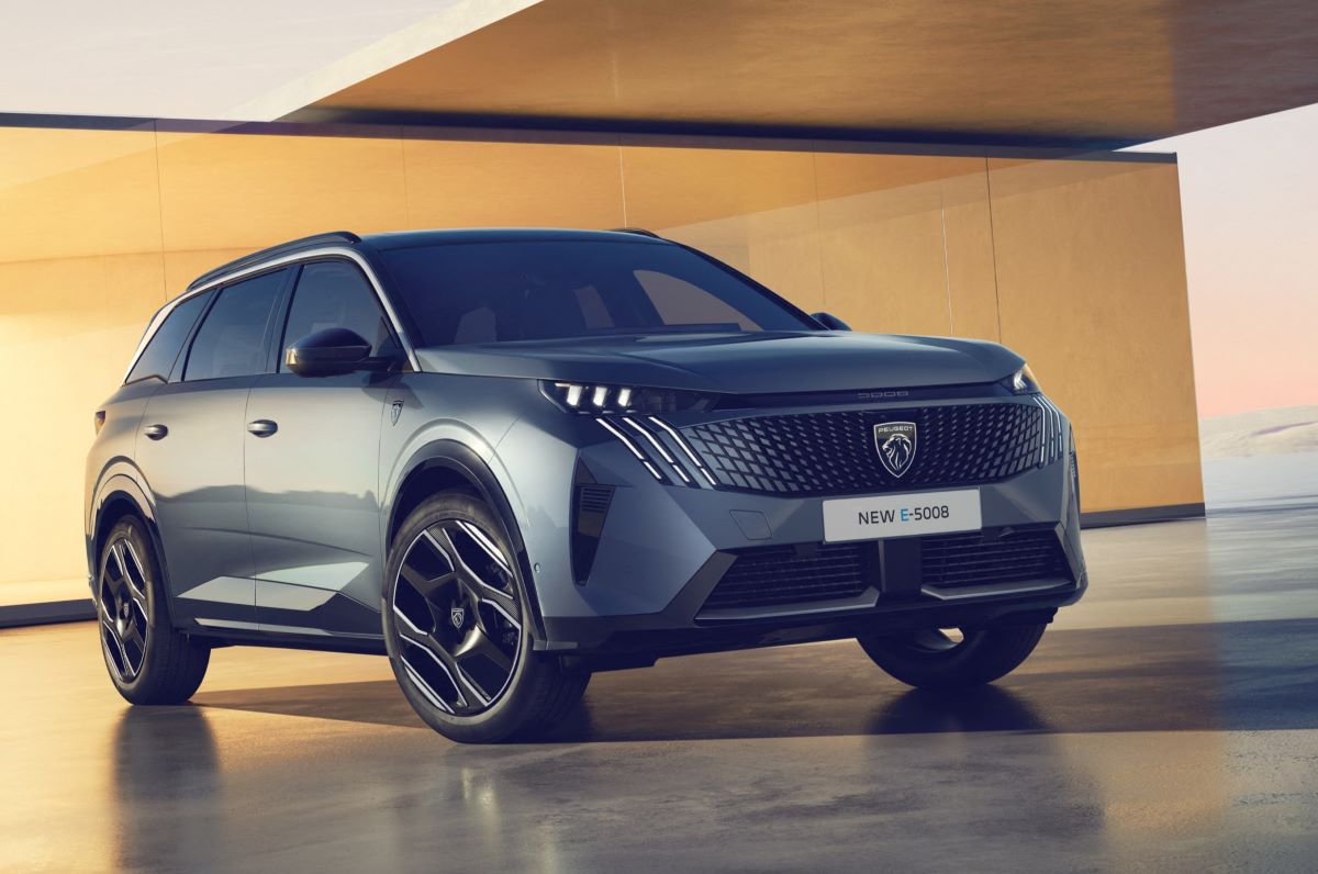 PEUGEOT E-5008, 7 koltuk ve 660 km menzil ile sınıf atlama iddiasında. Ayrıca hibrit ve şarjlı hibrit de var.