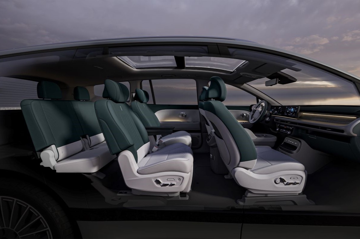 Hyundai IONIQ 9 markanın en uzun aks mesafesine sahip modeli. 3.130 mm ile geniş bir iç mekanı zaten müjdeliyor. Böylece üç koltuk sırasıyla yedi kişiye kadar oturma alanı sağlıyor. Ayrıca altı kişilik oturma düzenini seçmek de mümkün. Birinci ve ikinci sıradaki rahatlama özellikli koltuklar ek konfor sağlıyor.