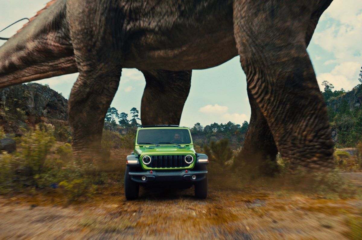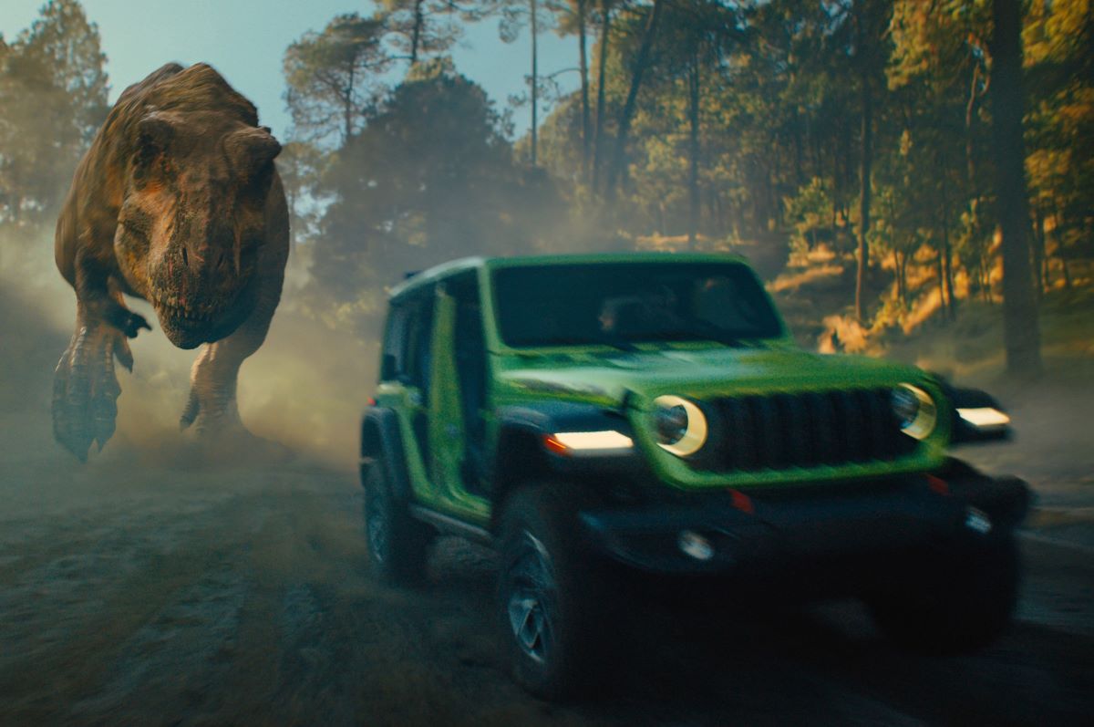 Özel çekim reklamlarda, Jeep Wrangler’ın Velociraptor, Tyrannosaurus, Spinosaurus, Compsognathus, Titanosaurus, Quetzalcoatlus ve yavru bir Aquilops’u kontrol etmek üzere gönderilen bir sürücü tarafından vahşi doğada macera testine tabi tutulduğu gösteriliyor. Yedi dinozor türüne yer veren reklam filmi, izleyicilerin Jeep’in ortak markalı Jurassic filminde bugüne kadar gördükleri en yüksek ses yelpazesini ve en geniş dinozor türünü sunuyor. Filmlerdeki dinozorları tasarlayan Industrial Light & Magic (ILM) şirketi, reklamdaki dinozorları da tasarladı.
