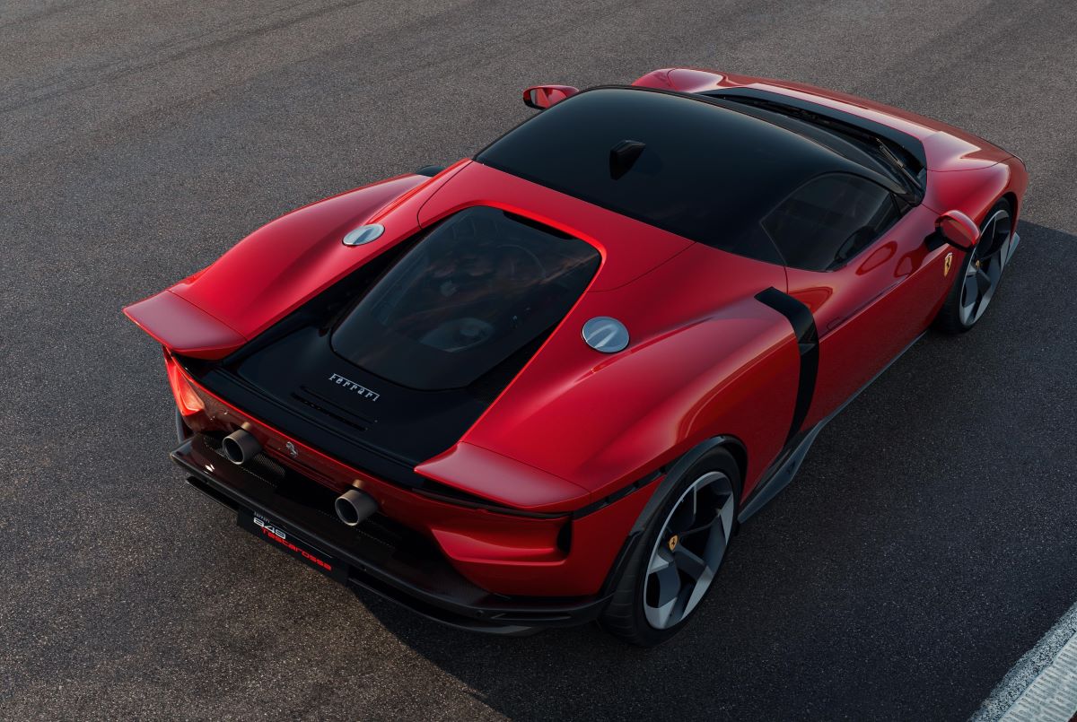 Ferrari Tasarım Merkezi, yeni modelde geçmişten ve yarış dünyasından ilham aldı. Örneğin çift kuyruklu arka tasarım, aktif spoyler ve güçlü difüzörler yere basma kuvvetini destekliyor. Böylece 250 km/s hızda 415 kilogram yere basma kuvveti sağlıyor. Ön bölümdeki geniş hava girişleri soğutmayı yüzde 15 iyileştiriyor.