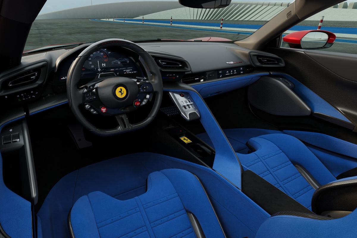 Kokpit, yatay düzen ve yarış otomobillerinden alınan detaylarla dikkat çekiyor. Ayrıca fiziki butonlar, yeni direksiyon tasarımı ve dijital göstergeler söz konusu. eManettino üzerinden dört sürüş modu seçmek de mümkün: eDrive, Hybrid, Performance ve Qualify. Ayrıca bilgi eğlence sistemi MyFerrari Connect iPhone ve Android da destekliyor.