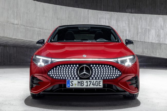 Uzunluğu 4,72 metre. Aks mesafesi ise 2,79 metre. Uzun aks mesafesi, kısa çıkıntılar ve alçak tavan çizgisi sportif karakteri vurguluyor. Ön panel elektrikli çağ için yeni bir yorumla karşımıza çıkıyor. Ayrıca 142 adet LED yıldız ile aydınlatmalı. MULTIBEAM LED farlar, Mercedes yıldızı biçimindeki aydınlatma animasyonlarıyla öne çıkıyor. Arka kısımdaki bagaj 405 litre ile çok da iddialı sayılmaz. Ama öndeki 101 litrelik ön bagaj bu açığı dengeliyor.